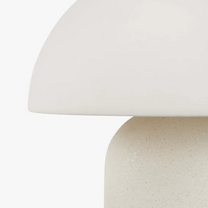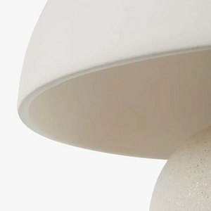 Der halbrunde Lampenschirm in edlem Off-White wird aus hochwertiger, glatter Keramik gefertigt, während der Lampenfuß mit seinen erdigen Nuancen und der feinen, körnigen Struktur einen natürlichen Ton-in-Ton-Effekt erzeugt. Diese Kombination aus Formen, Farben und Materialien macht Maeve zu einer stilvollen Ergänzung für dein Zuhause.