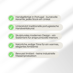 Die perfekte Balance zwischen zeitloser Eleganz und natürlicher Ästhetik. Handgefertigt in Portugal, kombiniert sie edle Keramik in Off-White mit einem strukturierten Fuß für einen exklusiven Look.