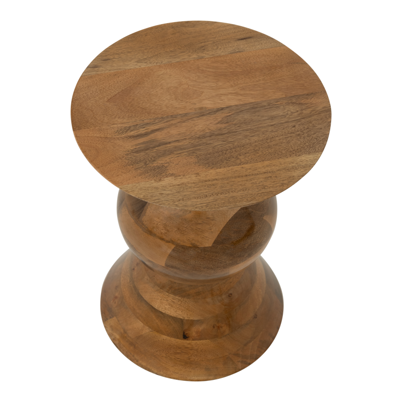 „Lustro“ vereint Natürlichkeit und Design in einer skulpturalen Form. Aus Mangoholz gefertigt und hochglänzend veredelt, ist dieser Beistelltisch ein handwerkliches Statement zwischen roher Authentizität und modernem Flair.