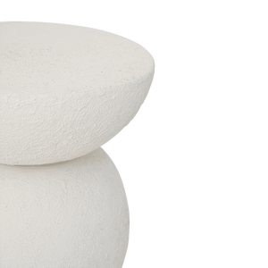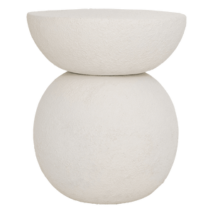 Eine Hommage an die Geometrie, neu interpretiert: „Umi“ kombiniert klare Form mit organischer Oberfläche. Handgefertigt aus Metall mit grober Struktur in sanftem Off-White – ein skulpturaler Beistelltisch, der zeitloses Design und Charakter in dein Zuhause bringt.