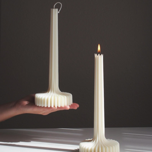 „Elegante Länge, sanftes Licht – die handgefertigte Kerze ‚Élance‘.“