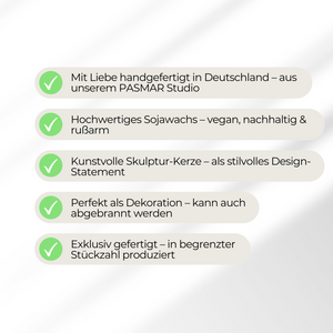 - Handgefertigte Qualität: Jede Kerze wird in sorgfältiger Handarbeit hergestellt, wodurch jedes Stück ein Unikat ist.
