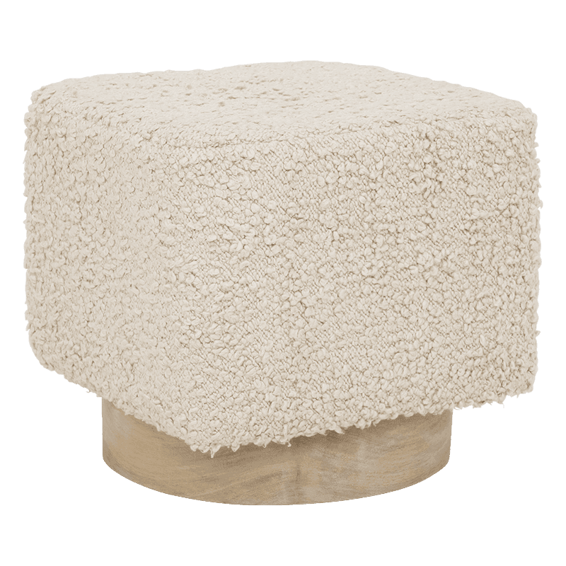 Ob als Hocker, Fußablage oder dekoratives Element – Kaura passt sich an. Die Kombination aus natürlichem Holzton und cremeweißer Oberfläche verleiht deinem Raum Leichtigkeit mit einem Hauch Erdung. Die quadratische Form mit sanft abgerundeten Ecken bringt Struktur ohne Strenge.